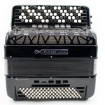 The model 320J/C has a very compact Bayan design. 3 choirs in the treble, 96 basses, 3 chin stops. Bugari Button Convertor are accordions that have the third manual. Here it is possible to play single notes on the bass side. Bugari has a long tradition and experience in building these instruments.
